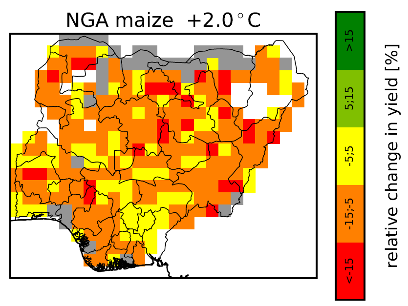 Basically, more orange, more red, a median decrease in yield of 9%. Now marry this with the fact that Nigeria’s largely rural population was 122 million in 2000 and is now 206 million (the World Bank tells us).